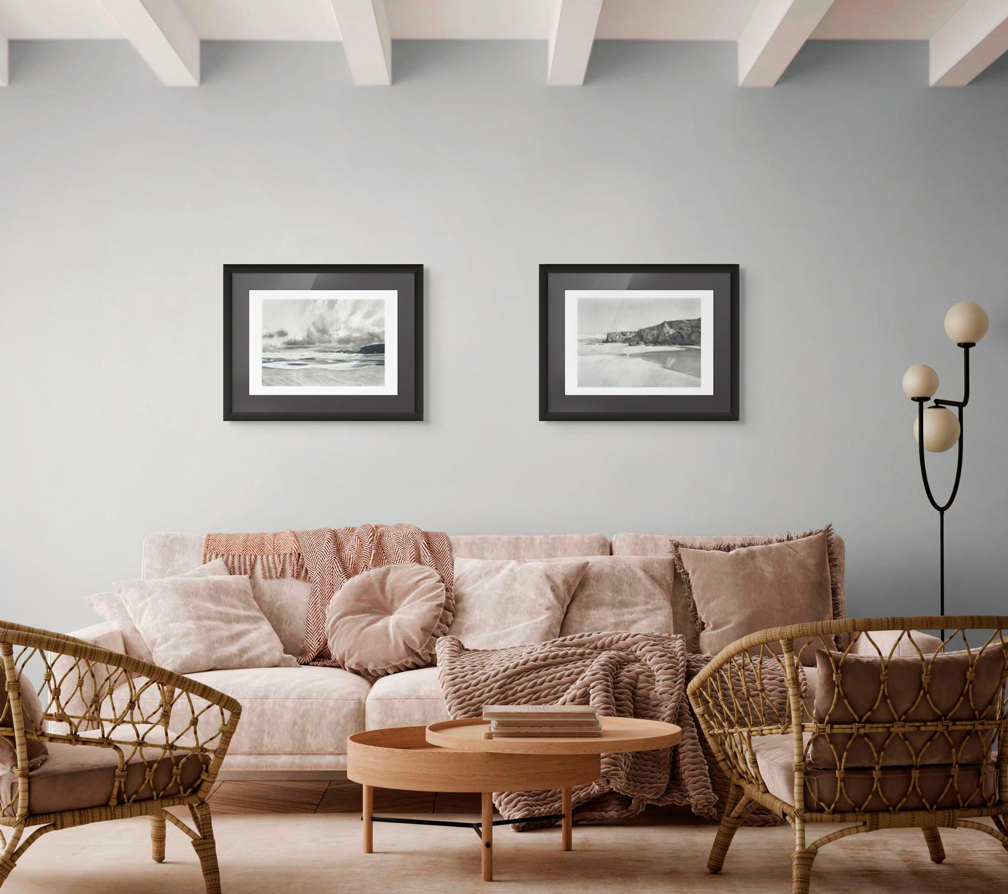 This atmospheric seascape shows the wild Cornish coastline, printed from an original charcoal drawing.